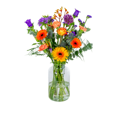 Met een oranje plukboeket geef je vrolijkheid en warmte.